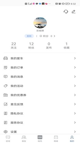 瑞风汽车app是一款由安徽江淮汽车集团股份有限公司发行的专门为拥有瑞风MPV汽车的车主打造的汽车服务类软件,该软件中是有很多的功能,是直接提供车趣、社交、活动、服务、爱车、会员、个人中心等服务,只要你下载app绑定车辆就可以直接享受该app中的所有功能,这些功能全都是免费提供的,你可以很直观的了解自己的车子情况,对自己的车子内部和外部进行一个深度的了解。