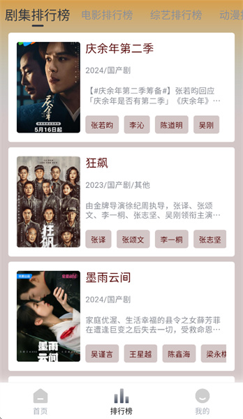 3、点击排行榜,即可看到最新的剧集排行榜、电影排行榜、综艺排行榜、动漫排行榜等。