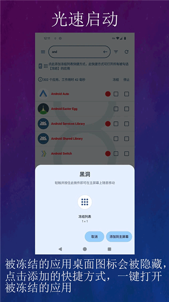为被冻结的应用创建快捷方式,只需点击,即可启动