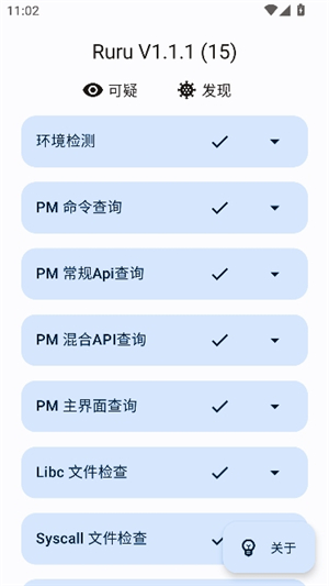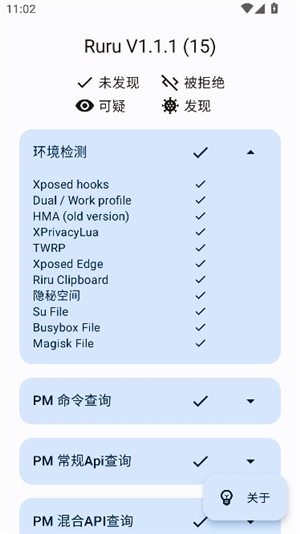 1、下载安装 RuRu 环境检测软件,然后打开。