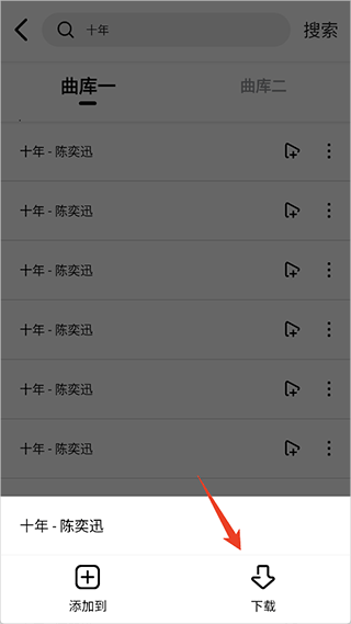 2、搜索时凭音乐名字找出歌曲,搜出后点旁边功能图标