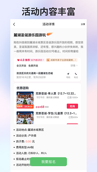 你可以发布找搭子,也可以参与其他搭子发起的活动,兴趣相同,你们就可以一起搭啦~
