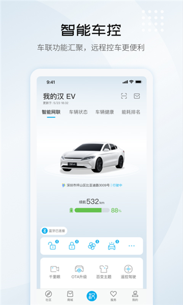 比亚迪汽车app是一款专为那些比亚迪用户准备的汽车管理软件,因此我们就可以利用该软件来帮助自己通过手机来操控自己的汽车,例如你可以实现提供远程控制汽车,远程启动汽车的空调,打开车窗和车灯等功能,所以有了该软件,就可以让自己更好的使用比亚迪汽车,因此感兴趣的用户,快来下载软件进行体验吧!
