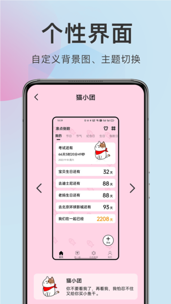 不会忘记重要日子,软件上面进行各种各样的纪念日的倒数,对每一个重要的日子都不会忘记,也会有到点的提醒等;