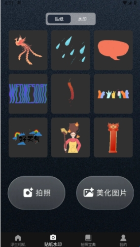 3、提供多样贴纸与水印素材,风格涵盖广泛,助力打造更具个性化的照片作品。