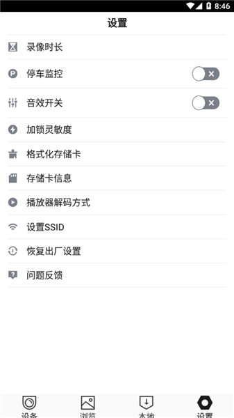 App提供了丰富的设置选项,包括视频录制清晰度调整、自动循环录制开启/关闭等,以满足不同用户的个性化需求。