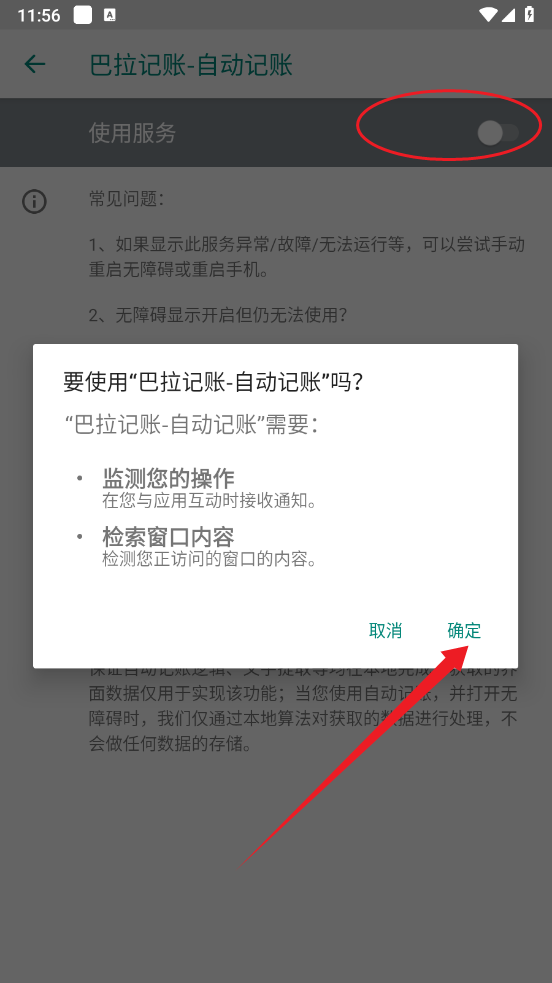 3、权限开启后回到巴拉记账APP,就会看到自动记账功能已经开启了。
