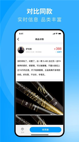 4. 浏览商品时点击任一物品进入详情页,页面下方可点击“找同款”查看同类产品,方便对比价格与成色,提升选购效率。