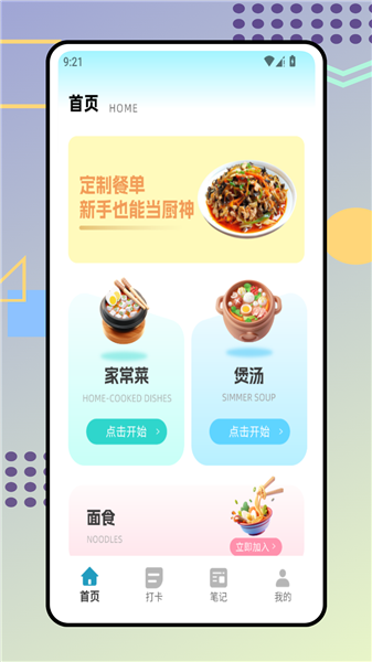 1、进入首页后,可以从顶部定制餐单或家常菜等分类里选想学的菜,点一下就能开始啦。