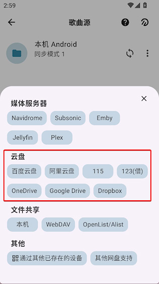 1、多源音乐接入:可连接本地存储、主流网盘及家庭媒体服务器,集中访问各类音频文件,无需切换多个平台即可统一播放管理。