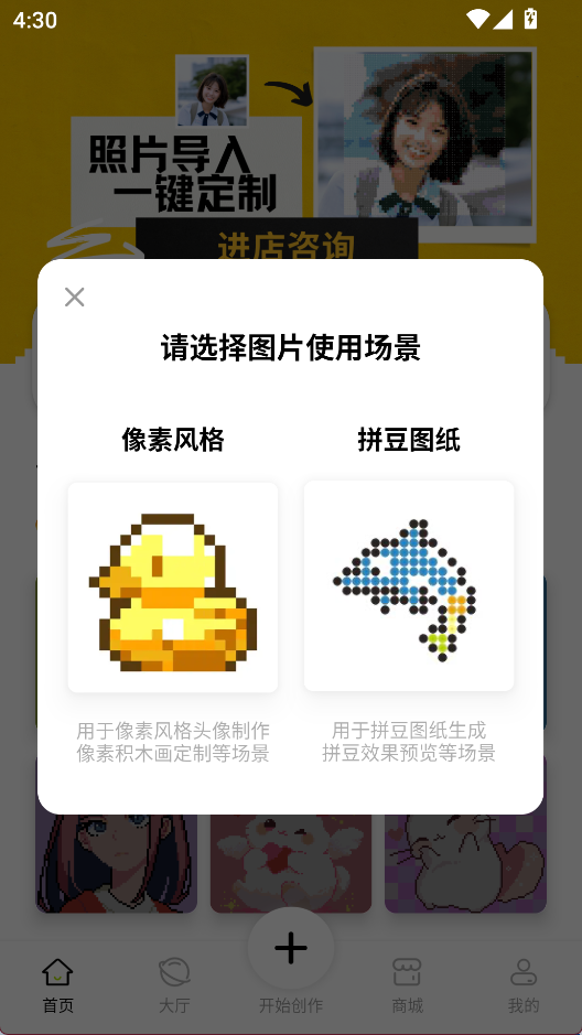像素创作家是一款像素艺术创作工具,提供多种画布尺寸与调色选项,可以自由绘制或参考内置图纸进行创作。操作界面简洁直观,适合不同绘画经验的爱好者,包含人像转像素风格等特色玩法,让创作过程更具趣味性。