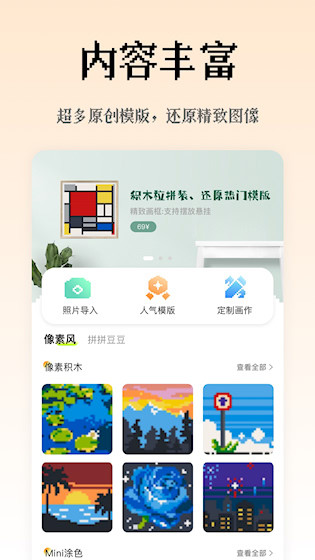 2、内置参考图纸:集成大量现成图案模板,涵盖人物、动物、风景等主题,帮助初学者快速入门,也方便有经验者获取灵感。