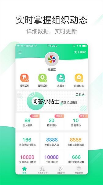 1、优化了“志愿者管理”“招募管理”“签到管理”等模块功能;