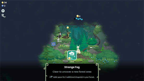 6、不断召唤更多的龙蛋来孵化更多的巨龙,驱散迷雾让森林重新恢复生机。