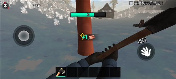 5、装上斧子后走到树旁边,就可以开始砍树了