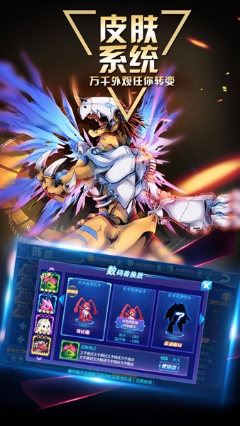 -升级:消耗数码兽经验卡或吞噬低级数码兽提升等级,等级上限受玩家等级限制。