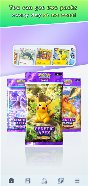 每天收集卡牌!您每天可以免费打开两个助推器包,以收集具有过去温馨插图的神奇宝贝卡以及本游戏独有的全新卡。