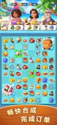 梦幻旅行是一款融合了合成、岛屿经营的游戏。玩家需要采集珊瑚、木材、食材等基础原料,通过合成的方式变成更加高级的道具。玩家还可以通过完成岛上居民的订单任务来赚取金币、建筑材料和剧情线索。随着岛屿的不断重建,还会解锁一些丰富的玩法活动,像冲浪竞速、海底寻宝、夜间音乐会、乐队表演等,完成这些活动可以获取限定装饰、稀有道具与额外资源。