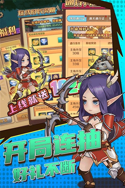 2、游戏中新手福利不能错过!每个新玩家都可以通过“在线时长奖励”拿到大量金币、钻石和宠物蛋,就是挂机一段时间就能轻松搞定。再来就是七日登录奖励,每天签到领取福利,最高可获得200钻石和大量金币、高级附魔石。