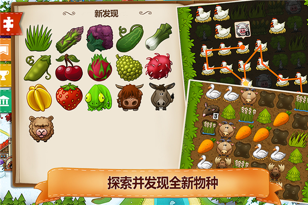 2、农场,可以种植蔬菜,喂养牧场动物,可以收获非常多的农作物,可以售卖它们。