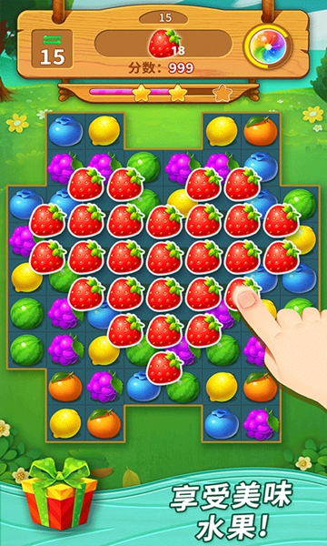 2、最简单的就是通过手指滑动将处在同一行或同一列的水果连接起来进行消除;