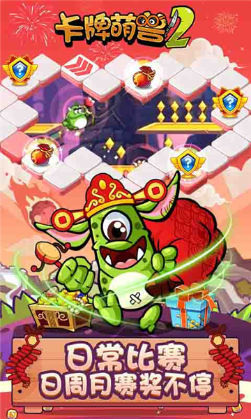卡牌萌兽2是一款跑酷加上卡牌策略类型的游戏。玩家需要通过点击和长按来进行跳跃,在奔跑中收集金币、钻石,躲避障碍与怪物,如果拾取到“酸梅”道具,还可骑乘坐骑,进入无敌状态并击飞敌人。游戏中还有多种类型的卡牌,像宠物卡片能自动追踪攻击敌人,武器卡牌能够释放技能、提供护盾、加速等增益效果,坐骑卡牌能够提供强力骑乘、冲刺、范围攻击等能力。