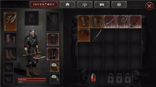 装备:主手高伤害高挥击技能武器,第一个图右上城左上武器店那把橙色大剑可以直接用到1周目通关,有钱了换第二个图右下城武器店那两把橙色斧头。副手前期随便拿把加挥击伤害武器伤害爆率爆伤的剑就行。身体装备加红蓝上限和回蓝的优先,护腕先随便带个加武器伤害的就可以,后面直接换橙色的,影响不大。戒指项链同样选爆击爆伤挥击伤害武器伤害的带。
