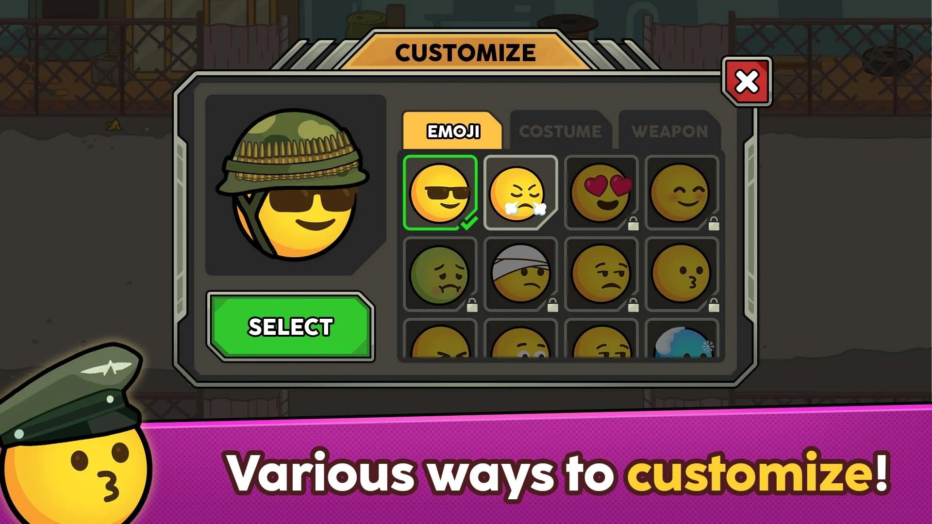 表情符号大战僵尸手游是一款只要积极体验就能轻松获得无尽快噶的热血战斗类游戏,在这里你将会看到各种全新设计的EMOIJ表情包,每个表情包都是超级可爱的,而且还有不同的能力和技能能够使用哦,还有各种emoji僵尸也是很有意思的,战胜他们就能获得奖励。