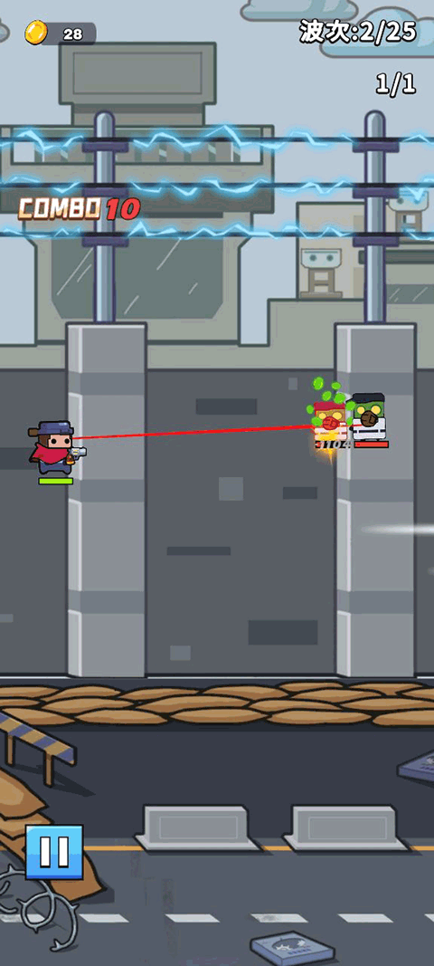 1、是一款主打轻松休闲的射击游戏,操作门槛极低,核心玩法十分简单 —— 只需要瞄准并射击关卡内出现的所有僵尸,就能顺利通关。