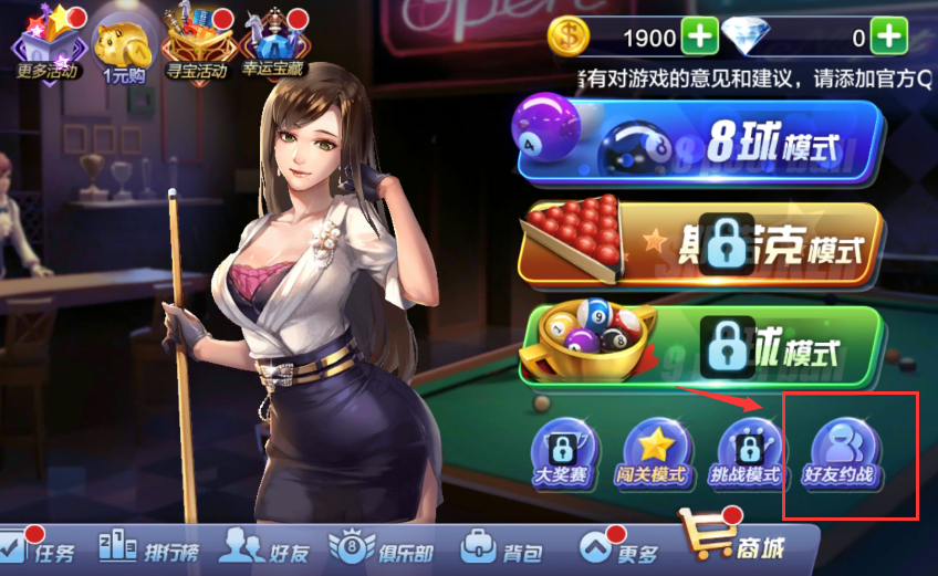 1.点击游戏主界面右下角的“好友约战”按钮。