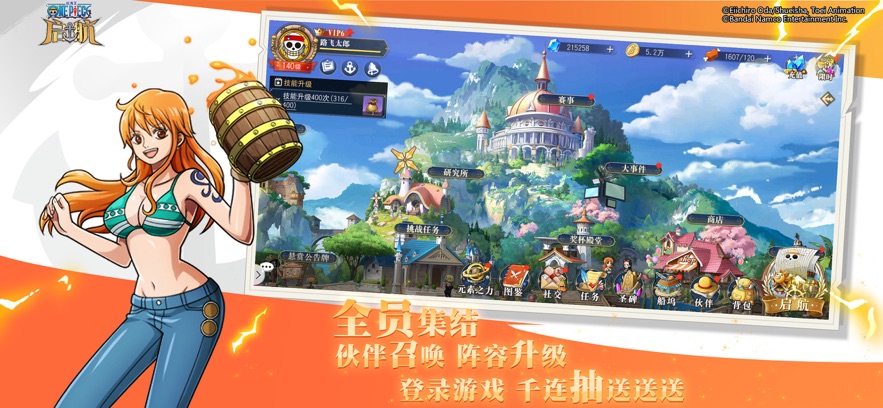 3、作为国内首款获得ONEPIECE正式授权的手游,凭借官方的正版授权,得以全方位展现专属于航海王的宏大游戏世界,让粉丝们能在移动设备上尽情探索这个充满魅力的奇幻领域;