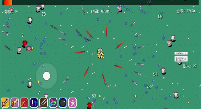 1、置身于复古的像素天地,你需要指挥自己的角色在广阔场景中击退来自各个方向的对手,唯有不断提升战力方可存活到最后。