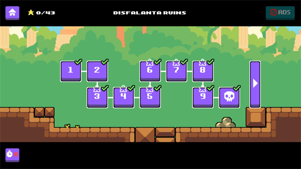 3、操控核心角色“萝卜”,执行左右移动、跳跃两类基础操作,通过踩动机关、引爆炸药箱或直接摧毁障碍物的方式,扫清前进路上的阻碍。