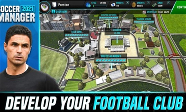 - 运用令人惊叹的三维动画技术,逐步建设您的专属足球场馆以及俱乐部的各项训练与生活设施。