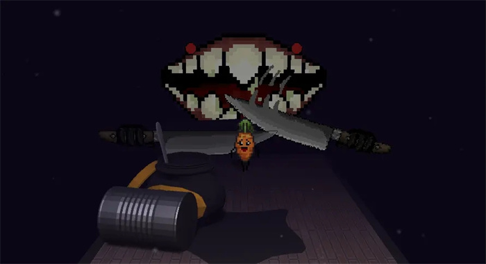 胡萝卜逃亡(carrot topped)黑暗的游戏场景和巨大的怪物,让我能让玩家可以更容易感受到游戏中萝卜的恐惧,玩家需要不断的越过障碍物,最好不要失误,每一次的失误就意味着你成为一盘菜的概率大了一分。但是也不要惊慌,怪物的移动速度不高。