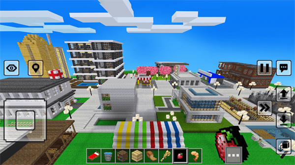 3、玩家可以利用种类繁多的方块材料,亲手制作并个性化定制现代城堡、摩天大楼与城市公园等建筑。