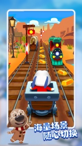 3、游戏由汤姆猫系列原班打造。与其他的跑酷玩法一样,玩家只需要控制汤姆猫一直向前跑即可,小心避开各路陷阱,收集大量的金币,解锁新的场景和皮肤。游戏画风可爱有趣,一定能讨得你的欢心