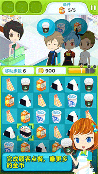 Konbini Story游戏是一款很可爱的Q版模拟经营类游戏,丰富的游戏玩法也都为你准备好了,好好的完成各种消除闯关就能获得海量金币,然后你就能解锁属于你的餐厅,记得要不断地去提升餐厅的等级,这样能够提高制作美味的效率。