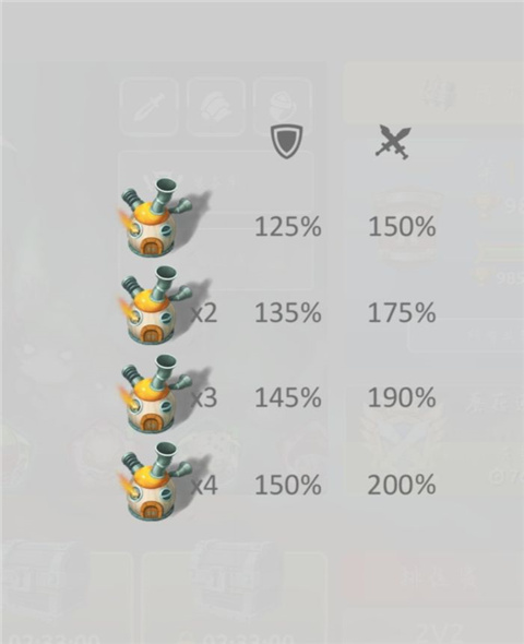 炮塔1升2射程增加百分之十,射速增加三十,防御增加百分之三十,