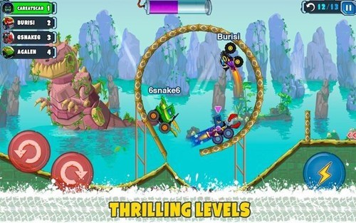 1、在沙漠或北极圈进行激动人心的比赛。当你超越车内的竞争对手时,拉开反重力机动!在收集涡轮增压器以提高性能的同时,通过疯狂的循环燃烧橡胶,跳山和速度!使用红宝石修改您的汽车进行一些疯狂的升级,以确保您继续统治赛道。