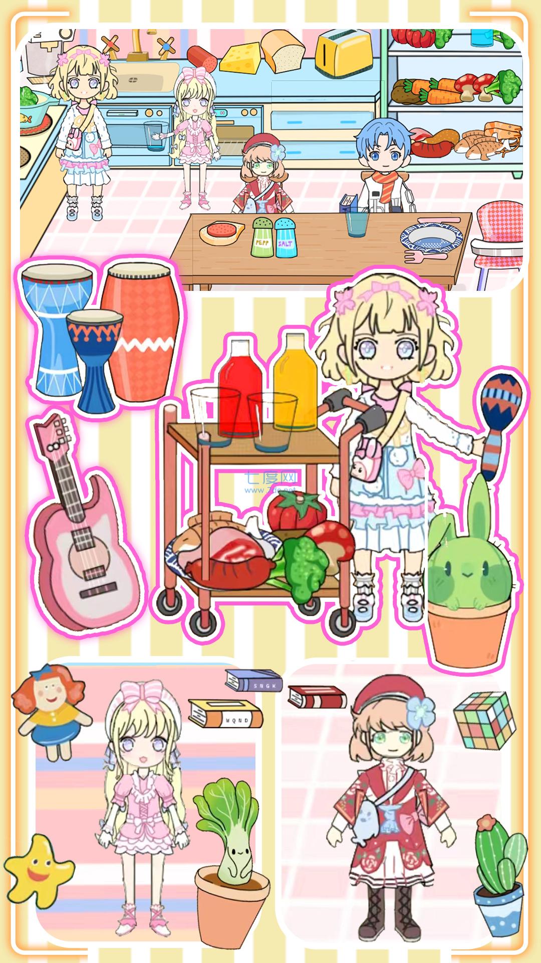 3、游戏中有各种美食与蛋糕甜品可供尽情享用,还能前往游泳池畅快玩水,或与朋友散步闲逛并聆听美妙音乐。
