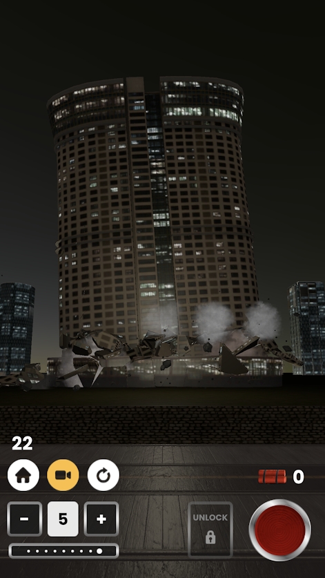 这是一款以真实物理和重力原理为基础打造的建筑拆除类游戏。玩家需要把炸弹精准安放到建筑结构上的指定可用插槽中。游戏内包含的建筑类型十分丰富,像常见的建筑物、高耸的摩天大楼、矗立的灯塔、大型的发电厂、工业风格的各类结构以及废弃的失事建筑物等都有涉及。除此之外,还有一些世界著名地标的仿造版本可供玩家体验,这些仿造地标在设计上参考了原始地标,但并非真实复制品。