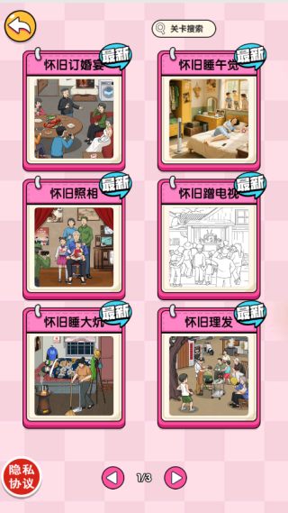 1、进入精心绘制的复古场景关卡,仔细观察画面的每一个细节,寻找与时代背景格格不入的现代物品。