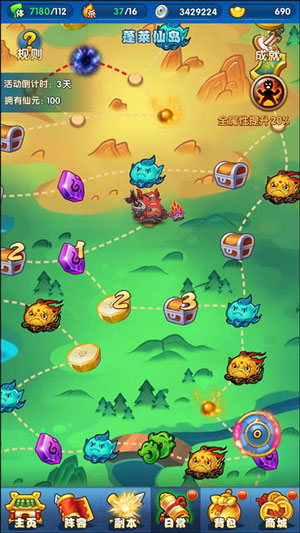 3、蓬莱仙岛的奖励十分丰富,是“仙元”的最重要来源。玩家可以通过游戏主界面的“日常”→“蓬莱仙岛”来进行当日的仙岛探险。