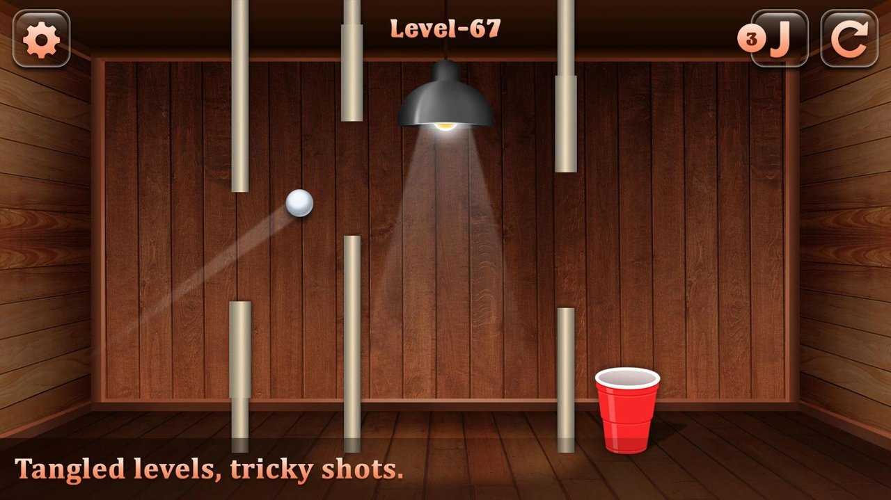 玩家任务是在各种环境下将乒乓球投进玻璃杯,有点击摇晃和滑动投掷两种操作方法。