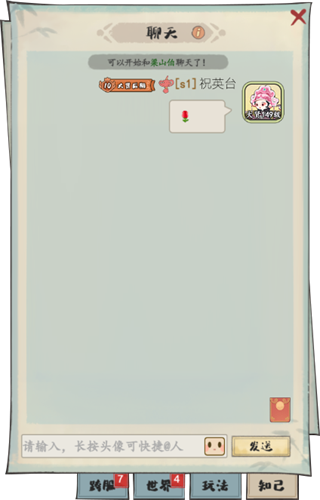 各位文人墨客可向心仪的玩家发起结缘邀请,双方同意后可结为知己结缘需要双方消耗结缘信物“同心结”,墨客们可在行脚商人处使用元宝购买“同心结”哦。