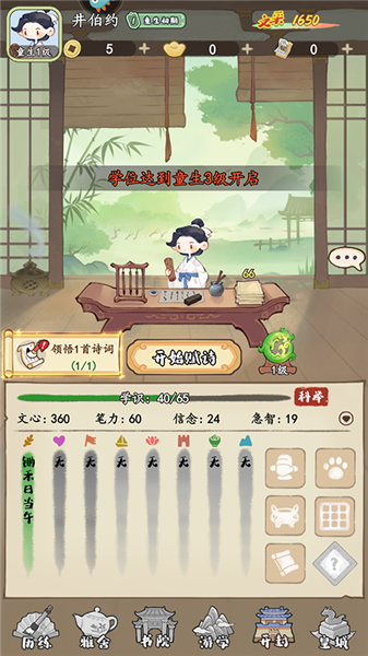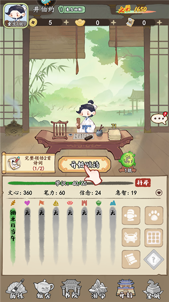 4、点击开始赋诗来提升各项属性。