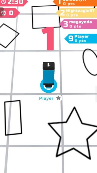 1、操控虚拟摇杆驱动涂鸦画笔移动,画笔所经过的空白区域,会自动填充你的专属颜色,逐步开拓并扩大自身的涂色版图。