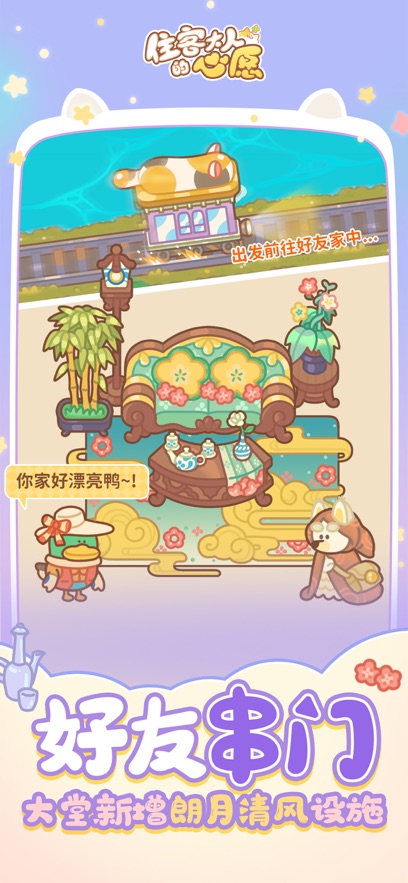 5、游戏提供了高度自由且内容丰富的装修体验,依据你不同的装修搭配,可能会出现住客在房间里荡秋千、雨天睡在阳台、在跑步机旁享受烧烤等奇妙场景;游戏更准备了多种懒人装修套装,让你一键即可体验星空漫步、夏日风情、热带宝藏及猫咪乐园等主题房间。