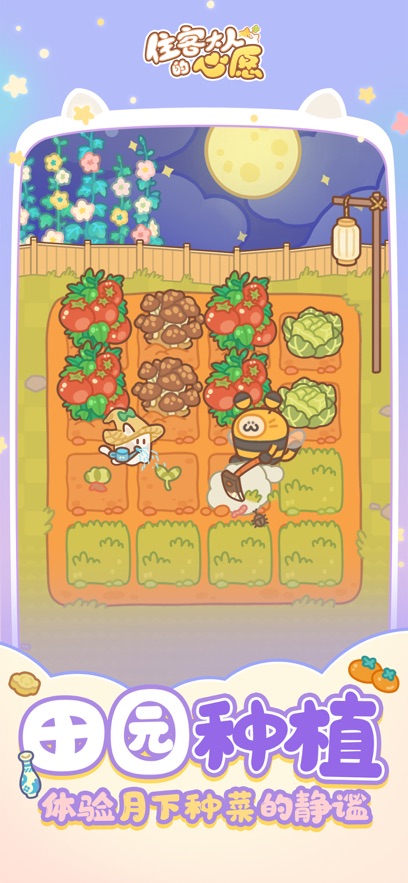 1、游戏巧妙融合了多种模拟经营元素,涵盖了室内装修、美食烹饪、田园种植以及住客招揽等经典经营玩法。